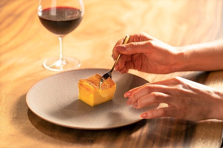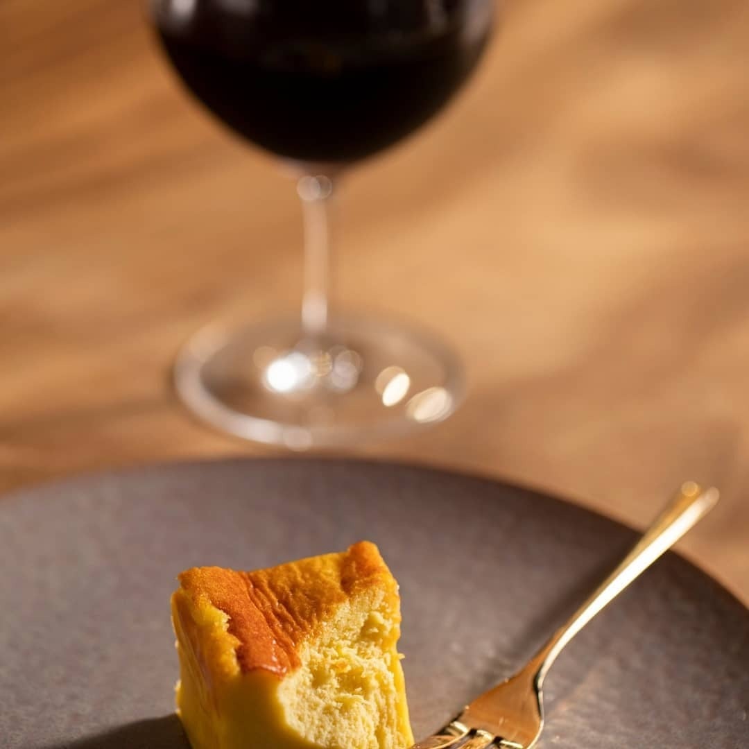 素材を選び抜き何度も試作を重ねた結果、ワインに負けない濃厚さ、ワインの香りに合うチーズのコク、なめらかな口どけ、 赤ワイン、白ワイン、シャンパーニュ問わずそのワインの表情によって変化を感じられるチーズケーキができました。ほのかに感じるゴルゴンゾーラの風味・・・ワインとの相性が抜群なんです!