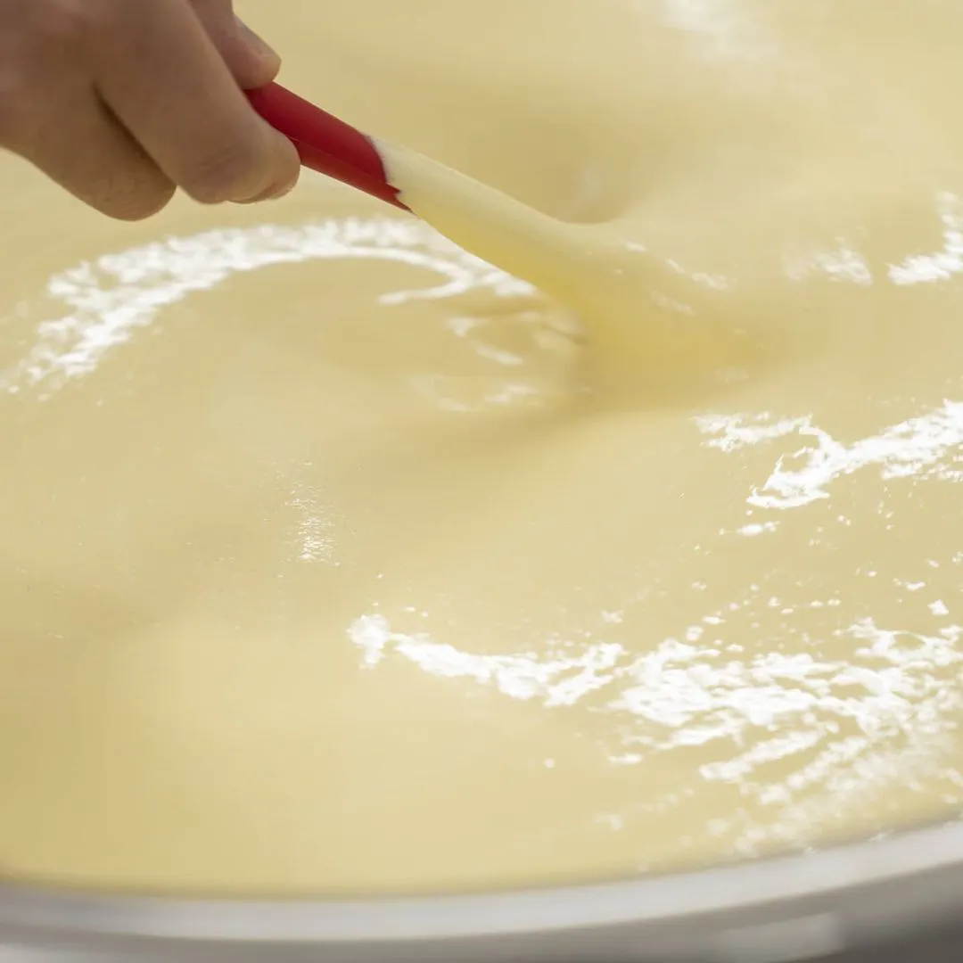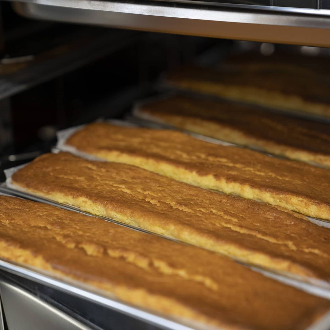 高温でまわりを焼き上げることにより、焼けた『香ばしい香り』と短時間で焼くことにより、中に火が通りすぎるのを防ぎ、滑らかな口溶けを実現しました。