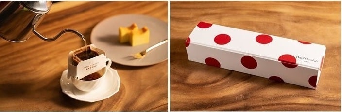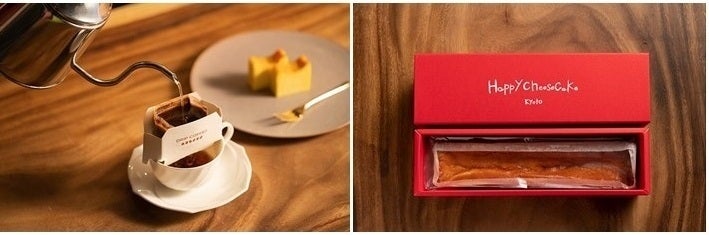 ハッピーチーズケーキ カジュアルBOX仕様×1本と、シェフがチーズケーキに合うように何杯も試飲し、コーヒー職人さんに配合して頂いたオリジナルブレンドのセットです。