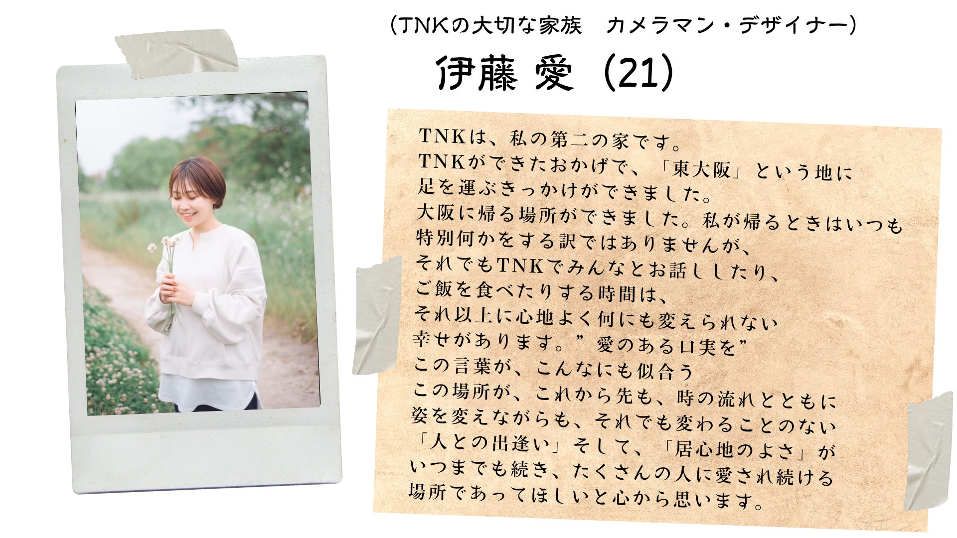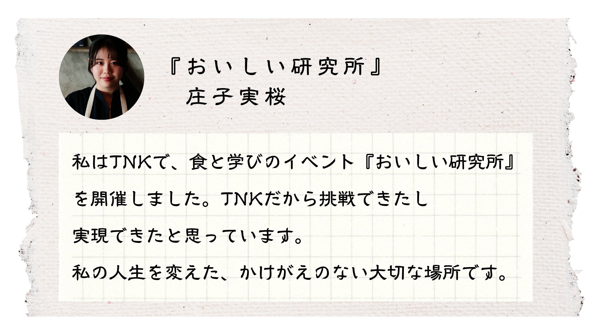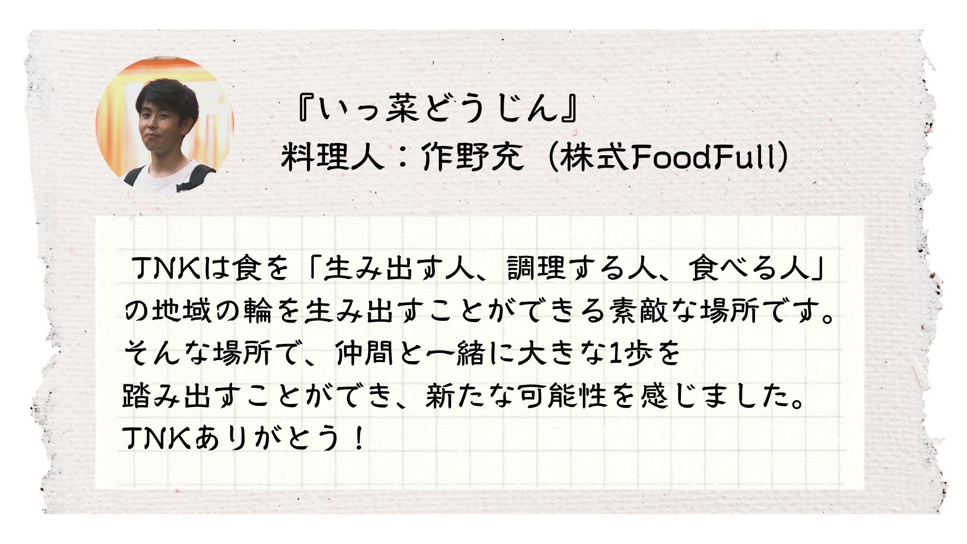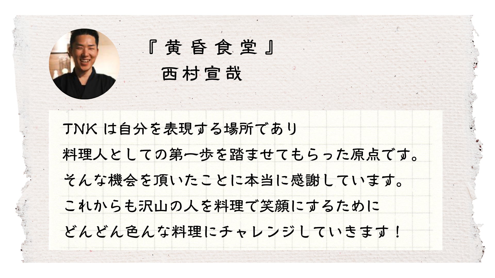 そしてTNKが昔から繋がっていた方々に助けられながらここまで成長出来たことに本当に感謝致します。