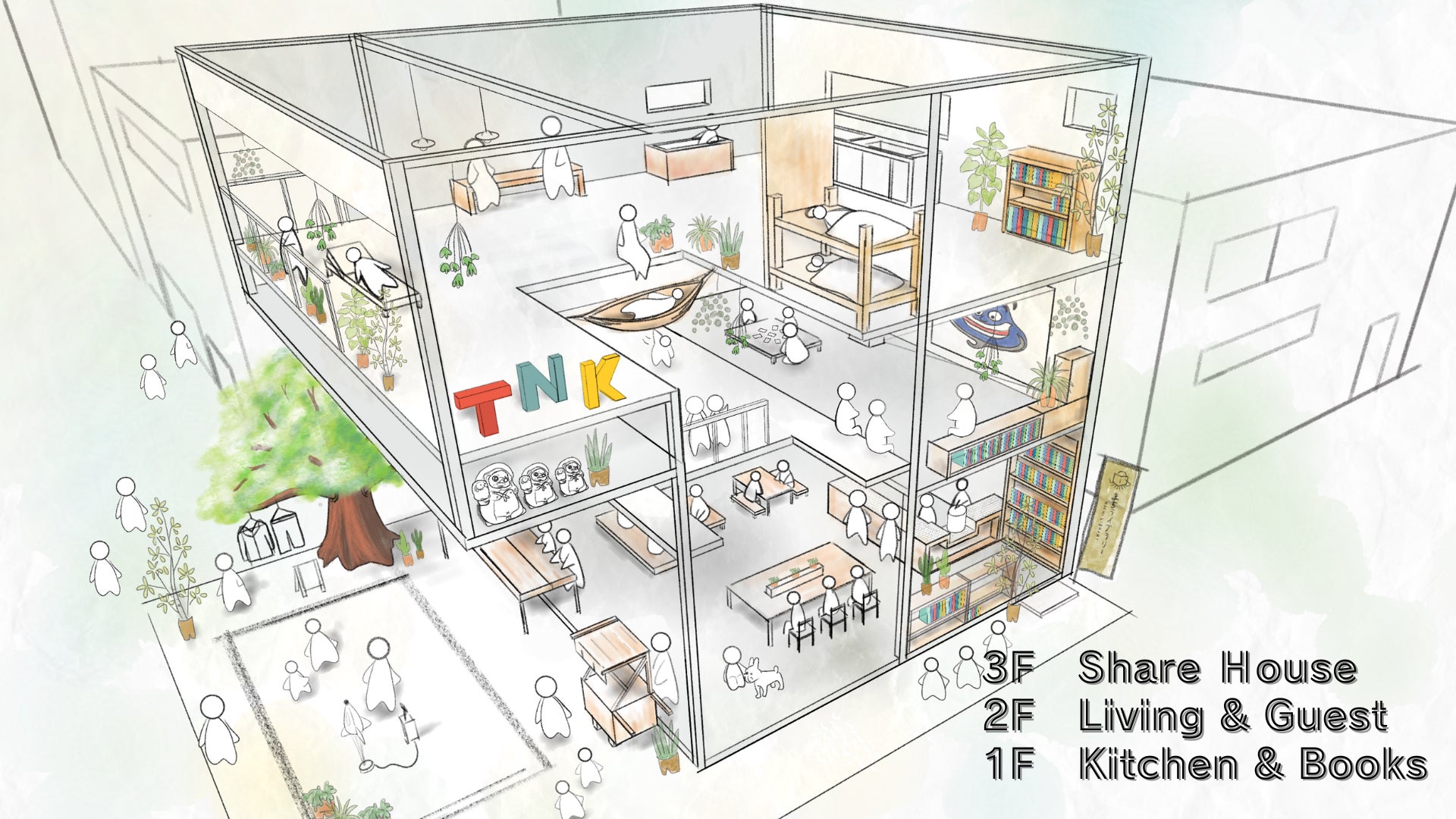そんな場所に人は集まり、活気が集まり、情報が集まる。『TNK BASE』は、そんなそんな街の在り方を目指します。
