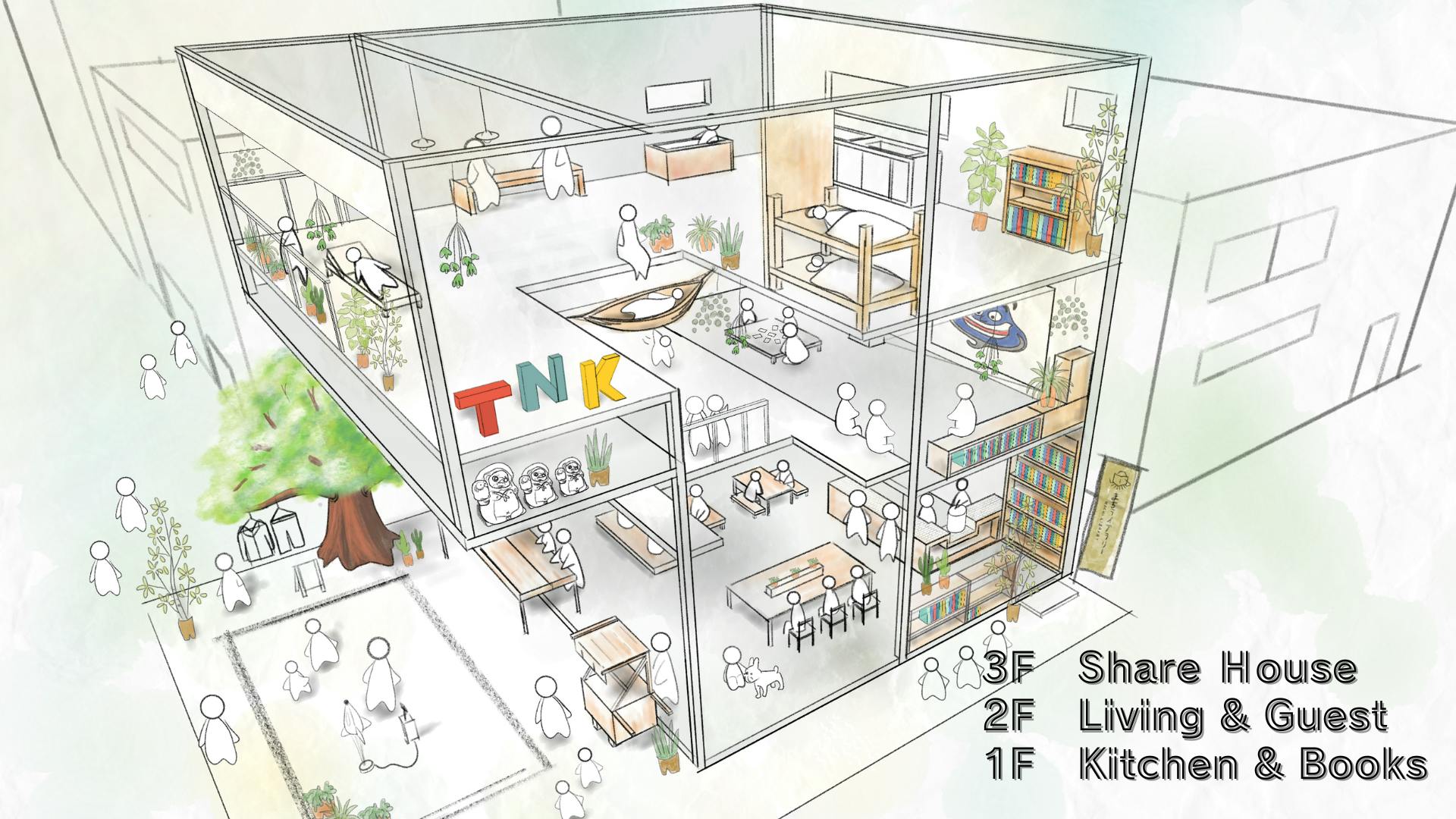 この度、私たちは東大阪にある地域特化型シェアハウス『TNK BASE』にカフェ&レンタルスペースを作り、『食』を中心とした交流拠点・街の居場所づくりチャレンジします!