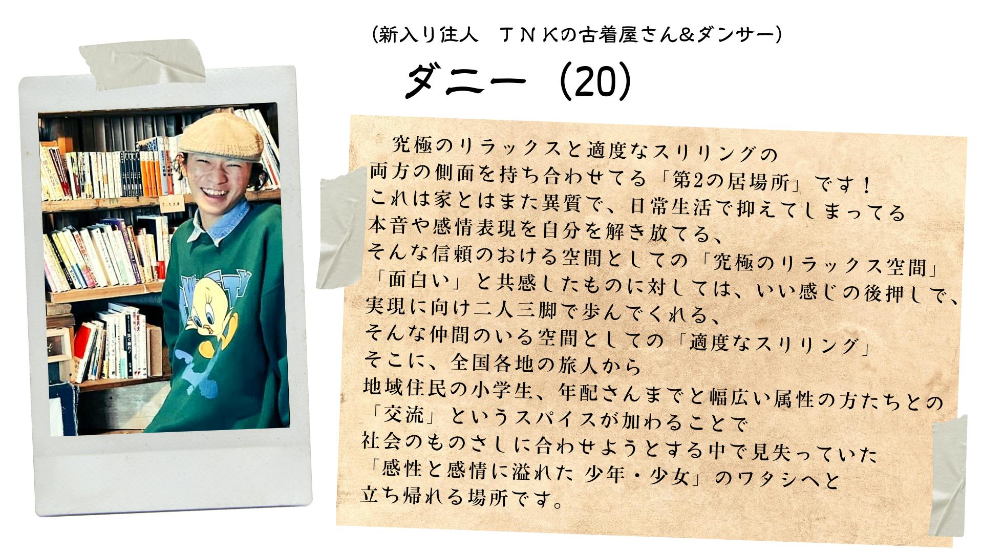 2022/08/23 23:09皆様、こんばんは!日が経つのが早いもので、TNKクラウドファンディング締め切りまであと5日となりました、、、!現在68名の方からご支援いただき、ありがたいことに、目標金額の66%である664,491円となっています。繰り返しになりますが、何度も言わさせてください。ご支援くださり本当に、ご支援いただきありがとうございます。!!!すごい額です...。すごい人数です...。そして昨日、追加リターンを3つほど公開させていただきました!ご覧いただきましたでしょうか??特に3つの中で注目していただきたいリターンは、TNKならではの " TNK復刻版 オリジナルTシャツ "となっています!昔のバイクショップであったTNKの時の姿をご存知の方は懐かしく思うかもしれません。本当に、本当に、カッコいいデザインなのです。見たことある人はいますでしょうか??実は、このTNKのデザインを背負ったTシャツを時々、TNKシェアハウスの住人が着ていることがあります!!(私は、着ているのを見て、いいなぁぁぁと思っています。)ということで!!そんなカッコいいオリジナルTシャツを、今注目のシルクスクリーンを使って"おすしさん"と共に、作れるチャンスをリターンという形で設けさせていただきました!!!是非、心に刺さるものがあったり、このTシャツ、ゲットしてみたいと思った方是非ボタンをポチッと押してみてください!!!引き続き、最後まで、どうぞよろしくお願いいたします。---------------------------------------------------------今回も最後まで読んでいただきありがとうございます。ここまで読んでくださったということはかなりTNKのことを好いてくださるのかな?と思うので、今週末にあるイベントのお知らせを流させていただきます(^^)嬉しい限りです。ありがとう⬇︎ TNK BASEにて土日にあるイベント ⬇︎8/27 (土)全ての野菜が等しく価値あるものに、をコンセプトに美味しすぎるスパイスカレーを作ってしまう"いっ菜どうじん"と、大学生が運営するcafe standと名乗る"鼻珈琲"という、とにかく雰囲気も、設置しているものも、彼らの手によって作られていて、すごくカッコいいのに、淹れてくださるコーヒーは、全く苦くなくてとても!飲みやすいのです。本当に美味しいのです。そんな彼らの生み出す美味しくて愛のこもった食べ物を通して、この場所に集まってくる人との出会いをお楽しみくださいませ。(^^)つい説明が長くなってしまいました、、。しかし、それくらい彼らは熱い想いを持って、出店してくださっています!!是非いらしてみてください!圧巻です。詳細は、TNK BASEのアカウントからご確認ください!!8/28(日)内ごはん第二弾開催!!!こちらは完全予約制なので、主催するTNKメンバーの"みお"かTNK BASEのアカウントまで、ご連絡ください!!ちなみに、TNKクラファンの動画にて、美味しそうな料理を作っていた正体は"みお"です!!そんな方と、管理栄養士を目指す大学生の、2人のご飯は栄養バランスがしっかりしているのはもちろん、なぜか身も心も暖かさを感じてしまうこと間違いなし!!というご飯を出していただけるかと思います!私も楽しみにしているイベントです!ということで今週末、クラファン終了と共に、激アツなイベントが2日連続ありますので、是非この機会にTNK BASEにお立ち寄りくださいませ!!!本当に長くなってしまい、申し訳ないです!読んでくださりありがとうございます!!!夜も遅いのでここら辺で今日は失礼いたします!!おやすみなさい。 もっと見る