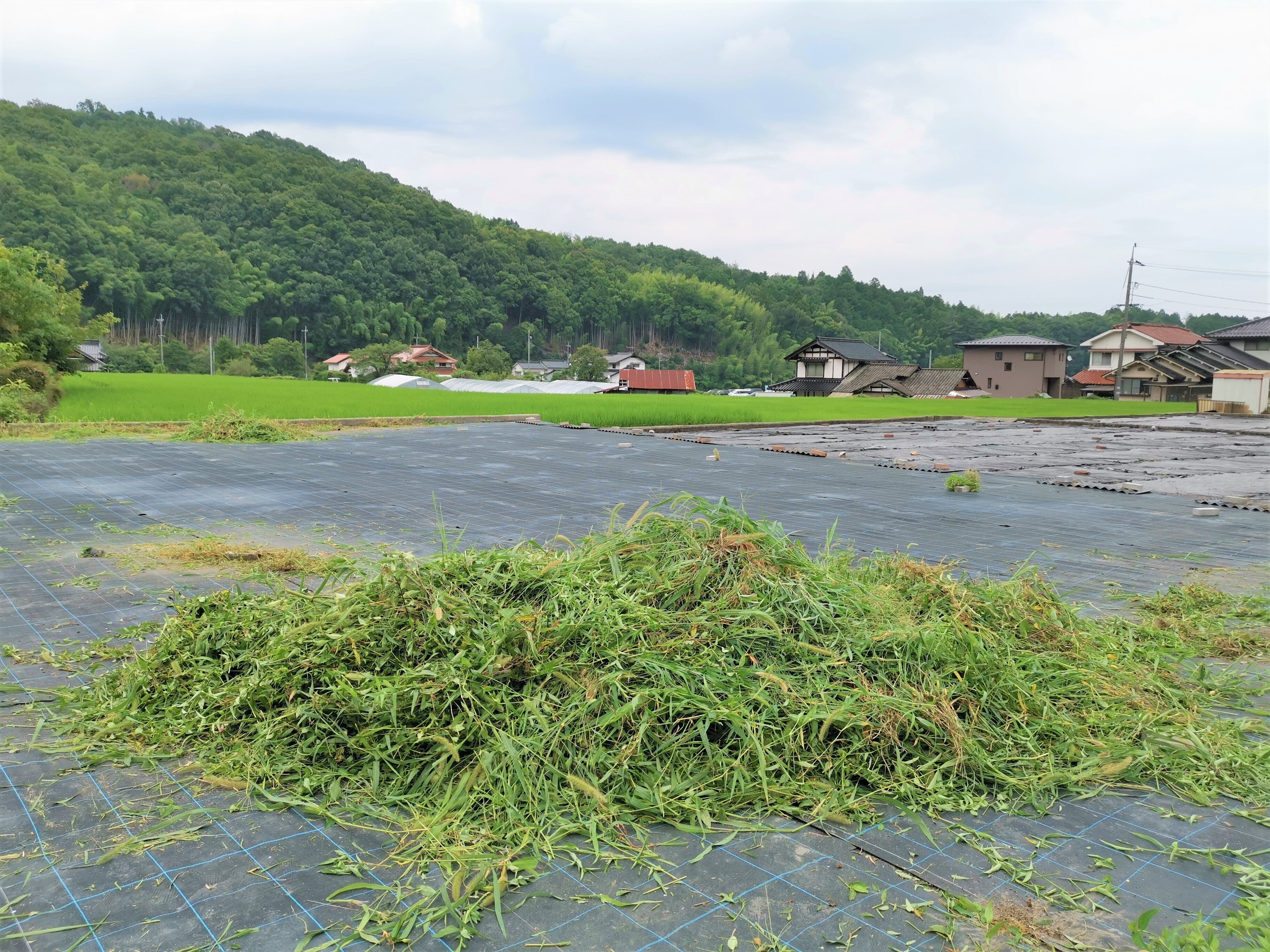 防草シートの上に雑草がこんなに。雑草魂というが、雑草の生き抜く力には関心する。