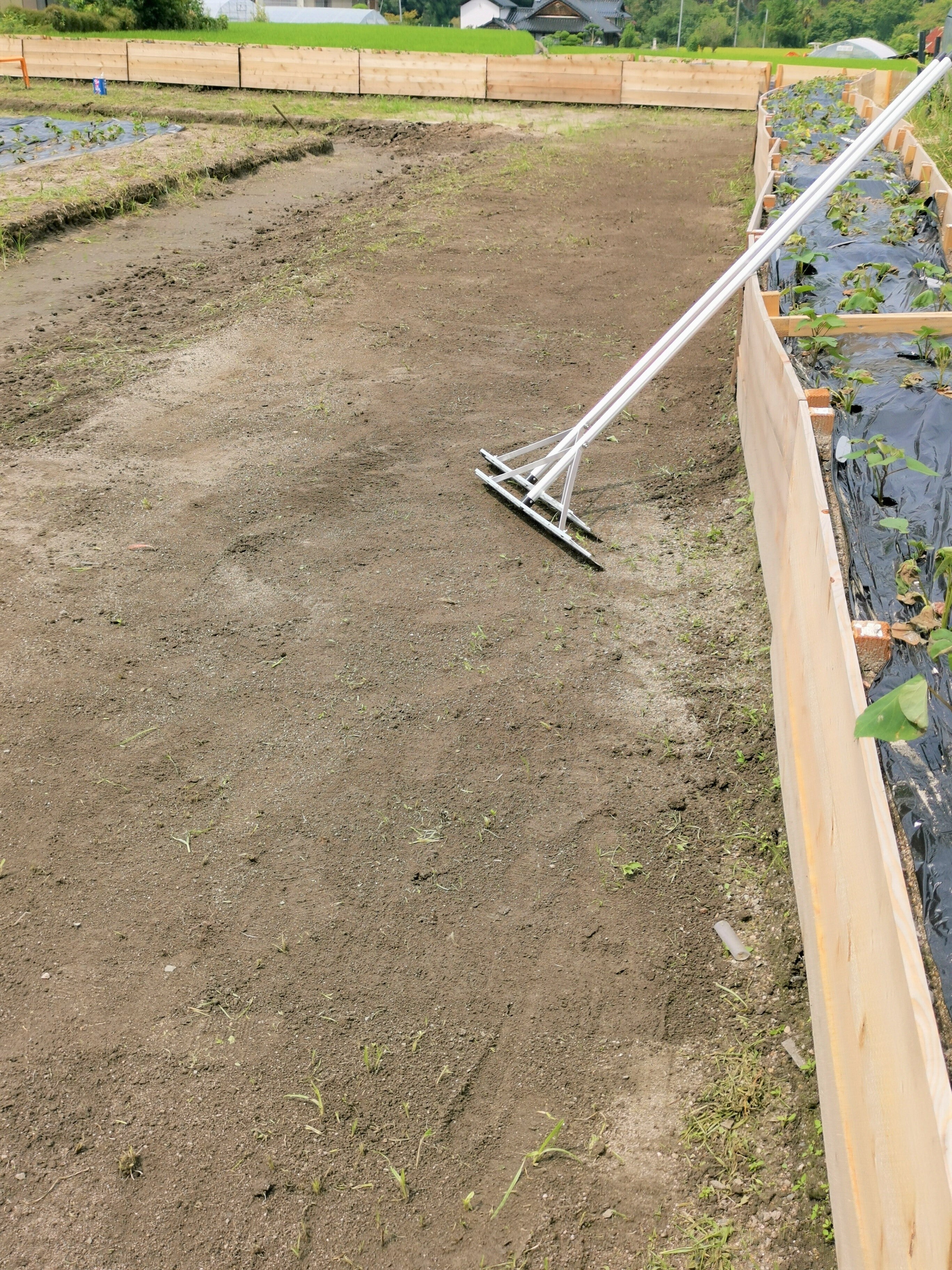 本日、バリアフリーに向けた工事をスタートしました。「地面を踏み固め、レーキで平らにして、ハードめの防草シートを敷く」この作戦で試してみようと思います。子どもの野球クラブチーム(保護者会)でグランド環境を整えた経験がここで活きるとは思いませんでした。何がどう繋がるか分からないものですね!!感謝