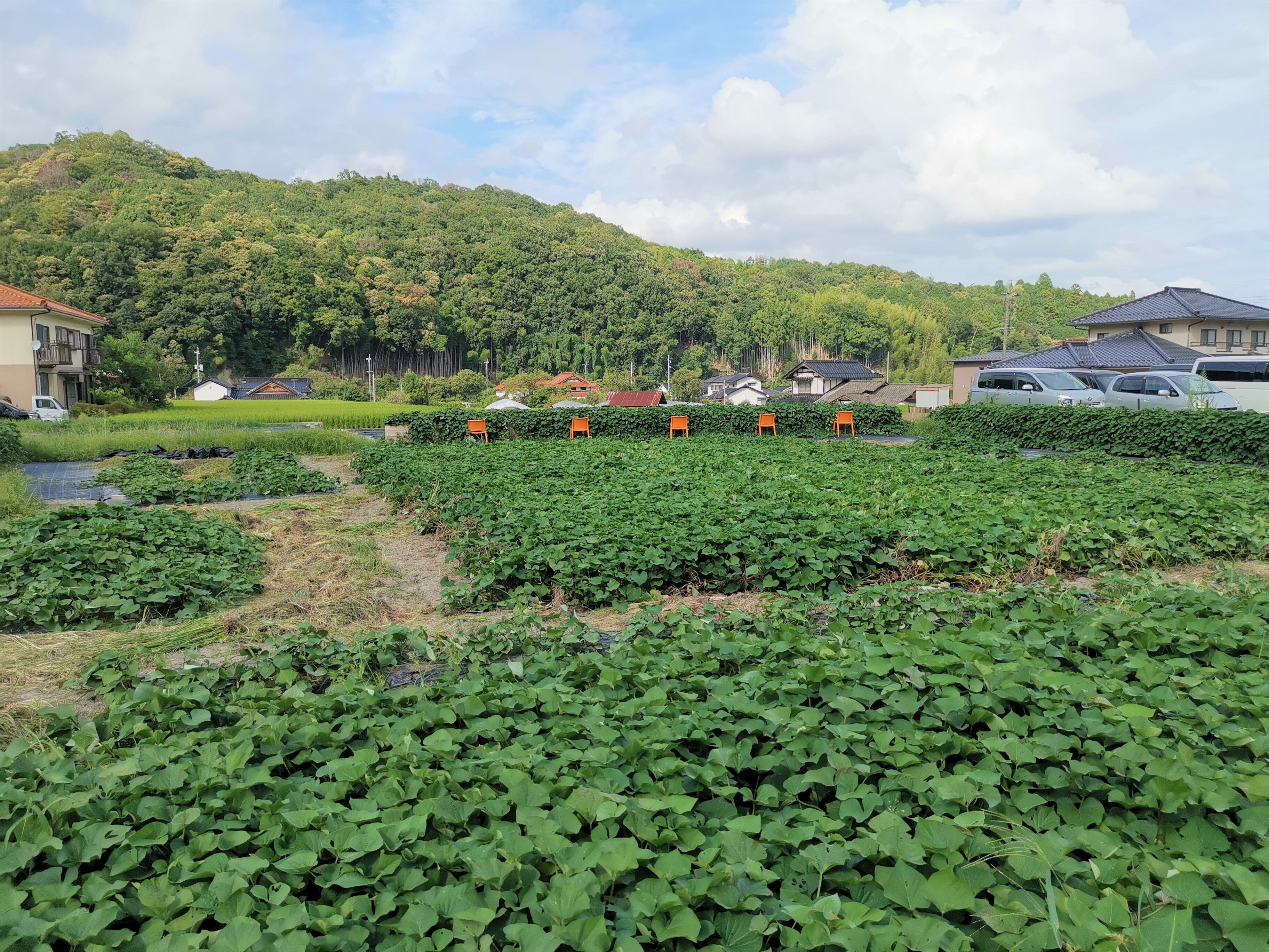 皆様のおかげで「誰もが楽しめるユニバーサルデザインのさつまいも畑」のベースが完成しました。今日は曇り雨のお天気でしたが、最後に奇跡的に青空が出てくれました。
