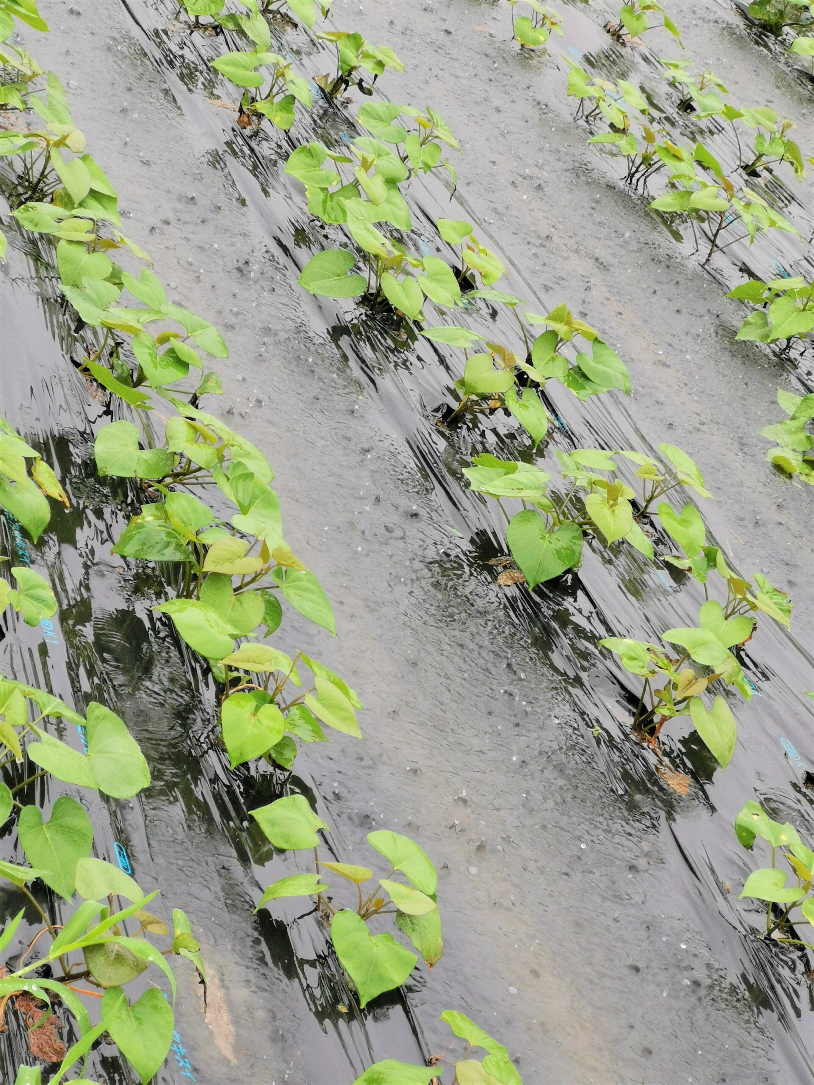 昨晩から大雨が続き、夜が明けてすぐに畑に行ってみた。さつまいもの苗は、そんな心配をよそにプールで活き活き大喜び。AゾーンからBゾーンへのスロープは決壊。車いすで掘れるプランターは一部決壊。修理と再発防止の対策を施した。トライアンドエラーの繰り返しで、だんだんと良くなっていく。