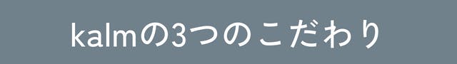 「kalm」は、オランダ語で「穏やか」「落ち着く」「凪」などを意味する言葉です。心やからだの悩みを癒やす存在でありたいという思いを、ブランド名に込めました。