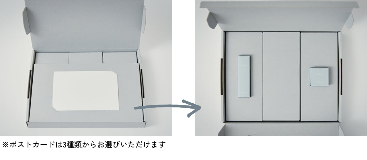 郵送箱を開けると、最初に目に飛び込むのがポストカード。ブランドのカードだけでなく、感謝の気持ちを伝えるメッセージを美しくデザインしたギフト用のカードもご用意します。普段はなかなか言えない気持ちを伝える手助けになれたら嬉しいです。