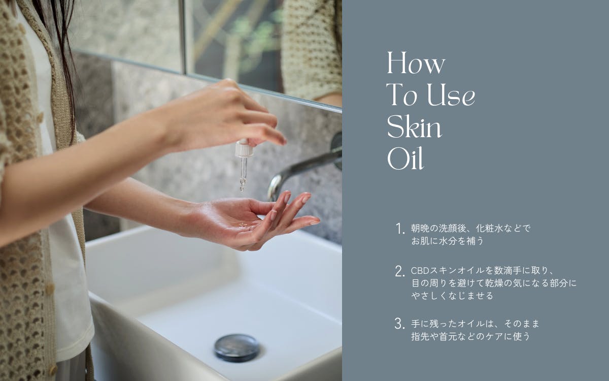 化粧水などでお肌に水分を補ったあとに、オイルをやさしくなじませます。手に残ったオイルは首元やデコルテのケアに◎