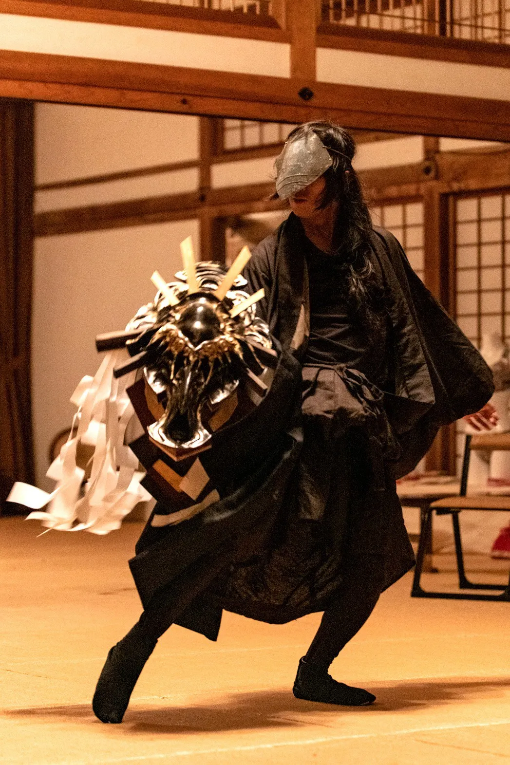 終幕を即興で飾る原始感覚獅子舞。