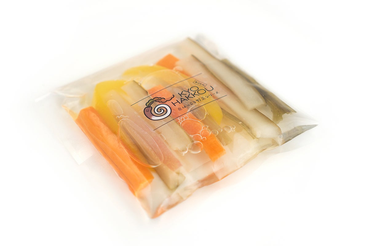 野菜を知り尽くした漬物職人の技術で、野菜の旨みをぎゅっと閉じ込めた新感覚のピクルスが誕生しました。京漬物職人の技でしっかりと下漬けを行うことで、野菜の旨みが生きる味わい深いピクルスになりました。