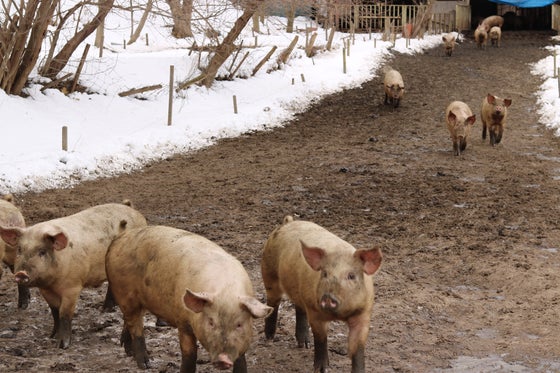 私たちは生産者に会いにいく旅を続けています。さまざまな食材を手がける職人たちと出会うために。 料理は素材を通して表現するしかありません。 顔の見える生産者からは勿論、直接会うことで密接な繋がりを築き、その価値を伝え、繋いでいく。お店で使用している食材、イタリアワイン、オリーブオイル、日本の食肉や野菜、 チーズなど生産者に会いに行き、その土地をみて語り、 確かなクオリティの食材を見定め、安心安全な食材を使用しております。 料理を作る過程で誰が食材を育ててくれてどういう魅力や特徴があるのか? どんな思いで作られているのかを知り、考える事で食材の可能性を広げ大切にし、 生産者の想いと共に皆さまのテーブルへとお届けしております。 信州の厳しい自然に寄り添い24時間自然放牧で豚を育てる生産者。 以前よりお世話になっている「安曇野放牧豚」の藤原畜産さんを訪ねました。 東京より車で約4時間、長野県安曇野に到着すると藤原さんが ようこそいらっしゃいましたと迎えてくださいました。 車で15分ほど雪の残った山道を登り、山の中腹へ。そこには、まだ雪がしっかりとのこっており一面真っ白な世界が広がっていました。 少し離れた所に豚舎があり、私達が到着すると 少し怯えながら、でもしばらくすると私たちに興味を持ったのか走って駆け寄ってくる豚さんたち。 安曇野放牧豚の特徴や生育方法などを、実際に見学しながら生産者の藤原さんにお話して頂きました。 【安曇野放牧豚の特徴】 冬はやはり寒いので大きくなりにくいですが、肉質はぎゅっと締まるので、ジビエに引け劣らず、この時期が一番美味しいです。 しかし、この時期はジビエを使用するお店が多い為、出荷量が減ってしまうのが残念だとおっしゃっていました。 イノシシとの違いは、イノシシはこの時期運動しないので、皮下脂肪が厚くなる=運動量 が少ない 安曇野放牧豚 皮下脂肪が厚くならない=運動によるもの そしてこの寒さが肉質を良くしてくれるので、この時期の九州の放牧豚と信州の放牧豚で は肉質の「キメ」が違う!そして脂がシャキシャキしているのが特徴だそうです。 しかし、約30年前安曇野放牧豚を始めた当初はこの寒さが仇となりうまくいかなかったこ ともしばしばあったそうです。豚には冬毛がなく(一般的に牛や馬には綿毛のような冬毛 に生え変わるのに対して豚は年中毛が生え変わらない)ので寒さに弱いことが判明。豚舎 に木くずや藁を入れ工夫し、藁と泥が何層にも重なり、発酵して暖かさを保つことで豚を寒 さから守っています。 季節に合わせた信州の食材を与えることも安曇野放牧豚の特徴です。夏には夏バテ防止に ミネラルの含まれたスイカを与えているのはマジカメンテにきて下さったお客様にお話し ていますが、雪が溶け、春先になると豚舎のまわりにヨモギが生えてくるので刈って豚に 与えます。そしてこの寒い時期には信州の特産 品であるリンゴを与えるなど、信州の自然に寄り添った生育をしています。 この寒さと運動量が安曇野放牧豚のおいしさの決め手です!春夏秋冬、肉の色も変わるし、 味も変わる、と素敵な笑顔で語る藤原さん。 お客様にお話したいことが更に増えた今回の訪問、貴重な経験をさせて頂きました。 マジカメンテでは顔の見える生産者と繋がることでどんな思いで作られているのかを知り、考える事で食材の可能性を広げ大切にし、 生産者の想いと共に皆さまのテーブルへとお届けしております。
