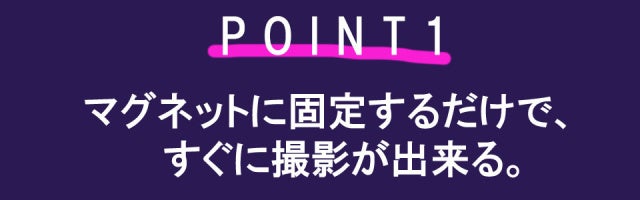 鉄やステンレスにマグネットをくっつけるだけ。だから面倒な準備や手間も不要。すぐに撮影がはじめられます。