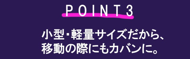 - ●カバンに入るコンパクトサイズで持ち運びもラクラク。