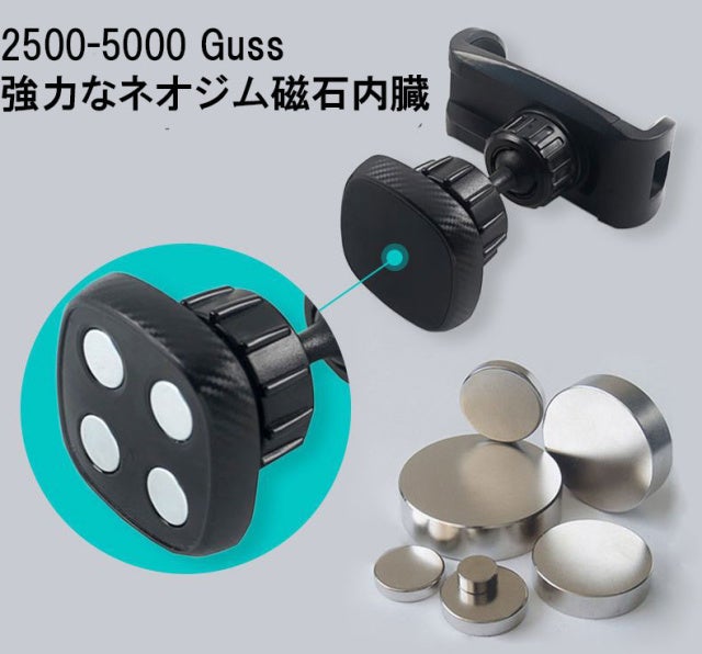 ●強力なネオジム磁石の使用でスマホをしっかり固定。
