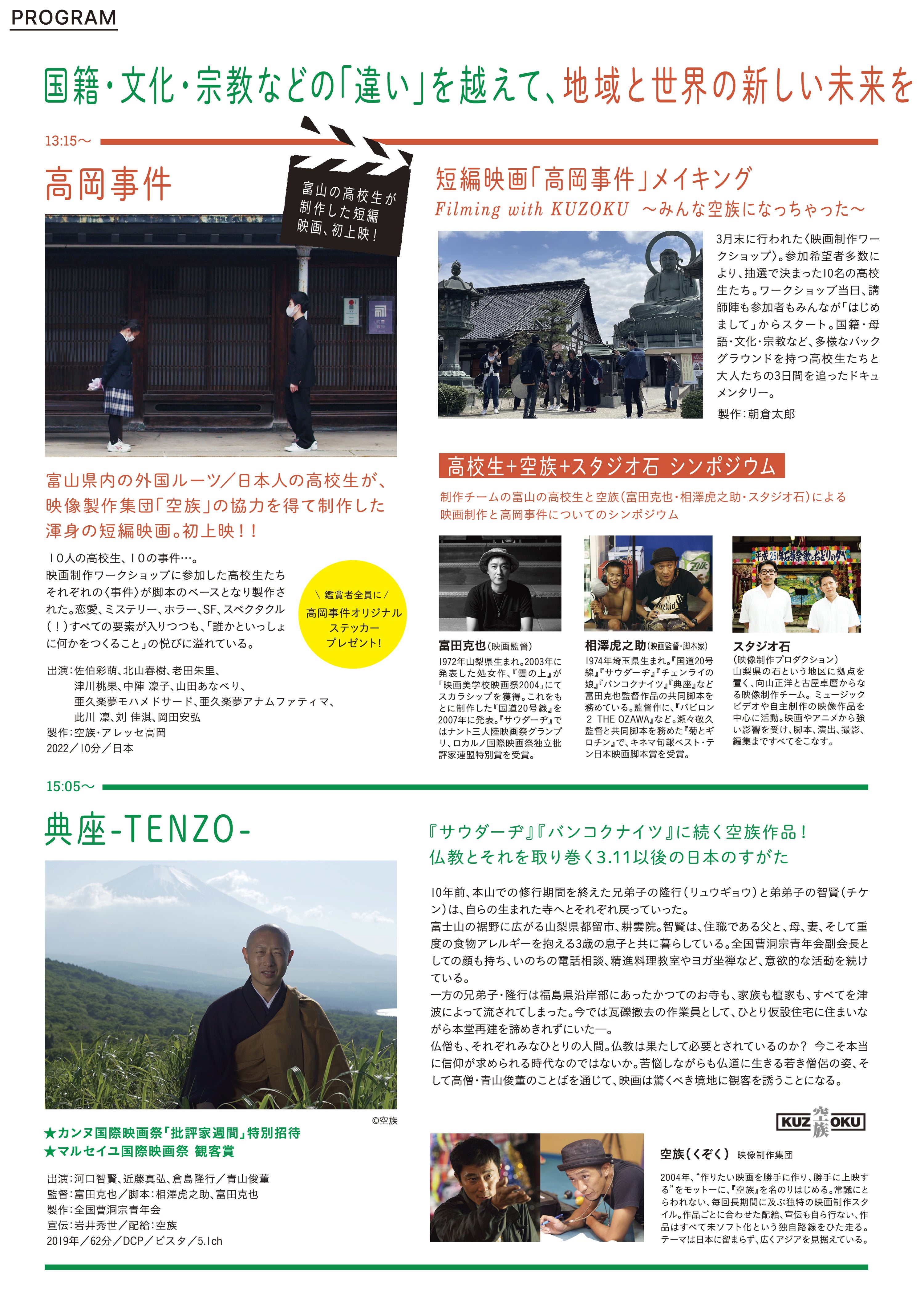 富山県内の外国ルーツ/日本人の高校生が、 映画制作集団「空族」の協力を得て制作した渾身の短編ドキュメンタリー初上映!