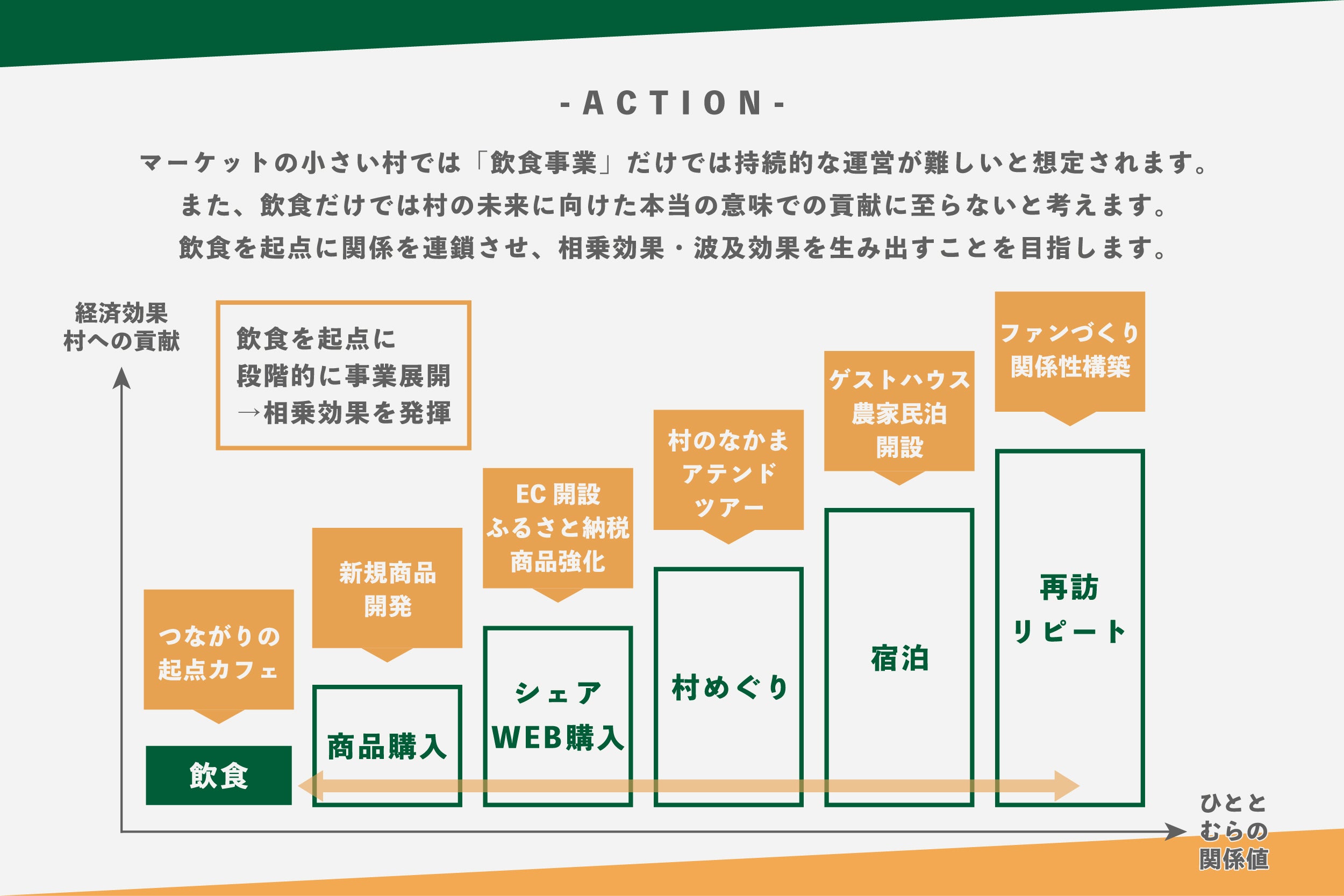 2022年5月下旬のオープンに向けて準備を進めていますが、私たちの活動は店舗の運営だけを想定していません。この起点となるお店を持続的に運営していくため、そして会社を設立した目的である【村に新たな風を興す】ため、地域内外の事業者と連携しながら、段階的に活動の幅を拡げていく予定です。
