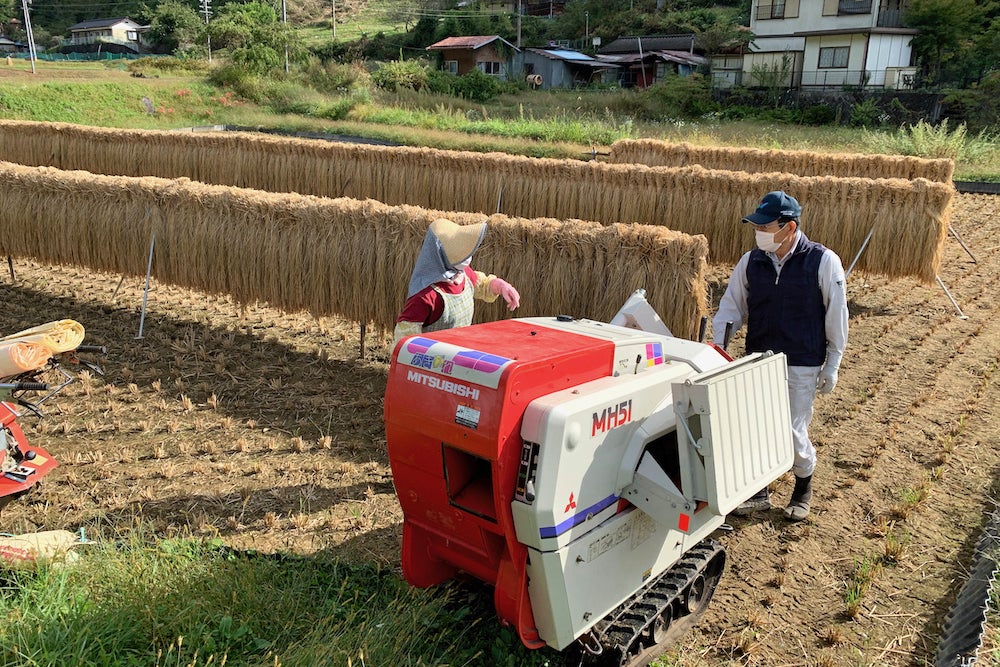 大鹿村では手間暇かけて収穫する「はざかけ米」の手法をとる方が多くいます(北澤、松澤の家もはざかけ米です)