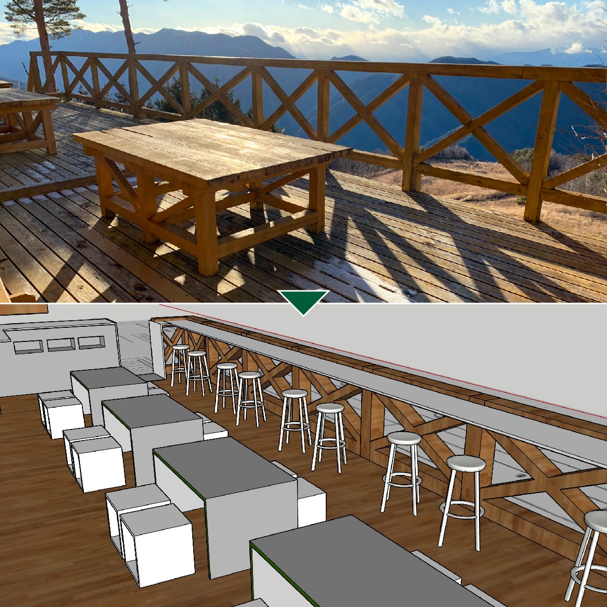 テラス改装イメージ。景色を楽しめる席を多く用意
