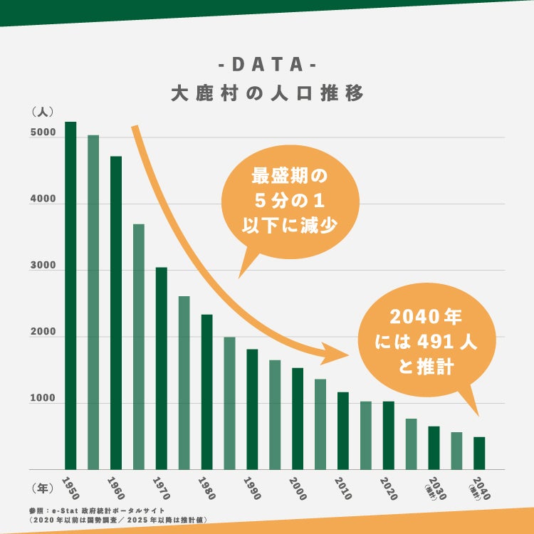 独自の文化を色濃く残す大鹿村ですが、大きな課題を抱えています。それは人口減少と高齢化。私が生まれた35年前は2000人くらいだった人口も、2021年のデータでは977人に。1000人を下回ってしまいました。