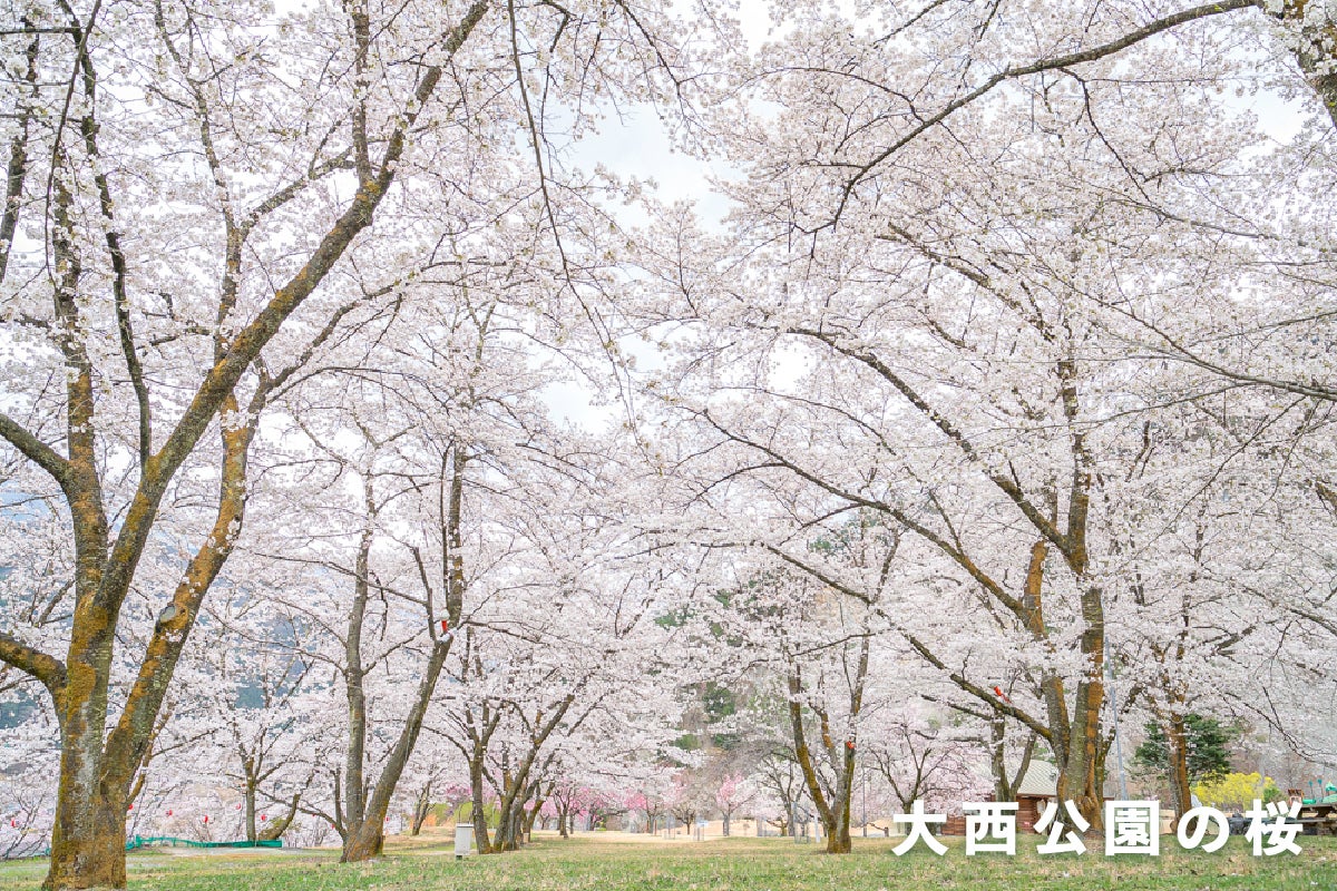 広大な敷地に約3000本の桜が咲き誇ります。毎年4月には「大鹿さくら祭り」が開催