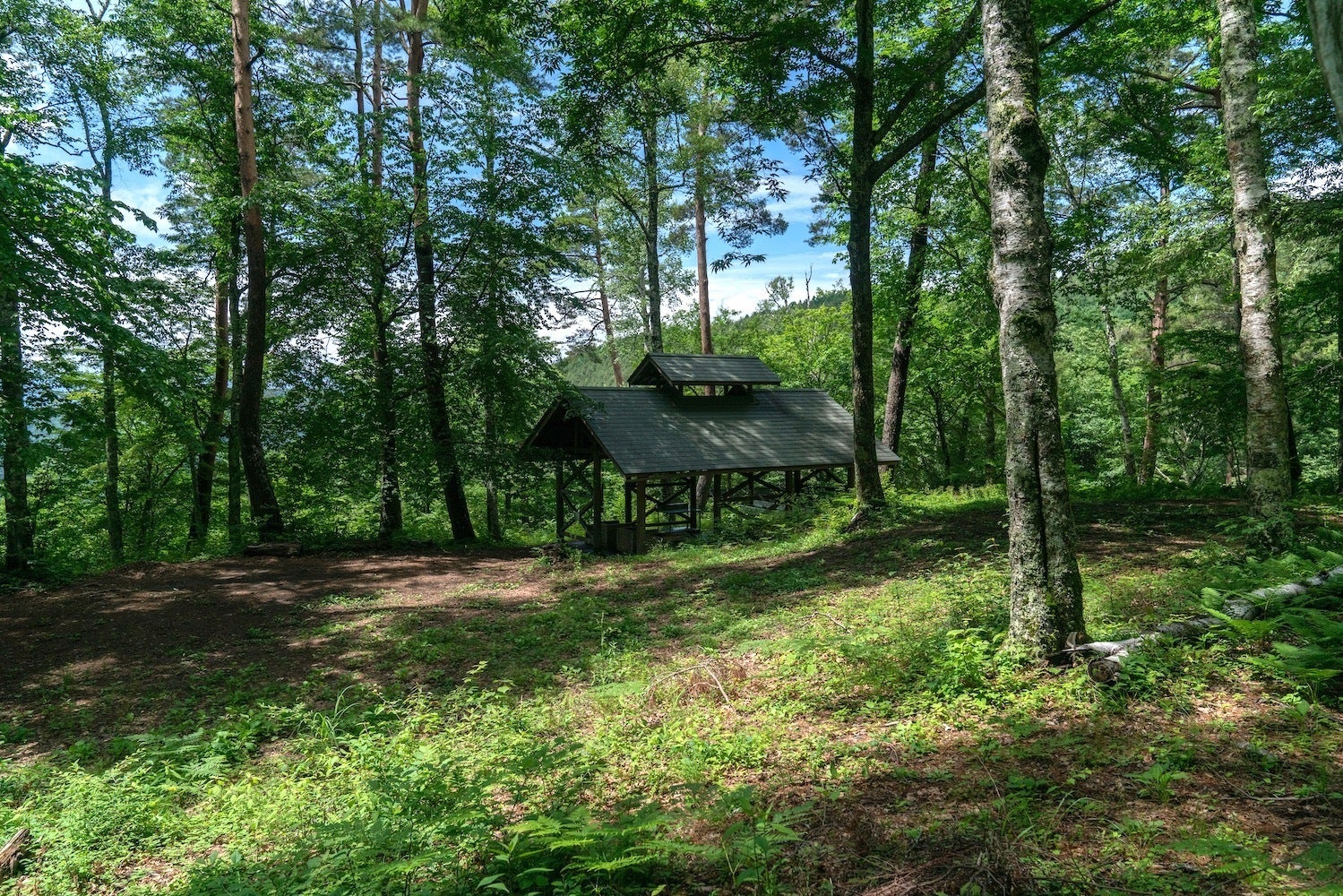 HAKKO OOSHIKAのほど近くにある「大池高原キャンプ場」。一面の緑に囲まれながら中央アルプスや伊那山脈を一望できます