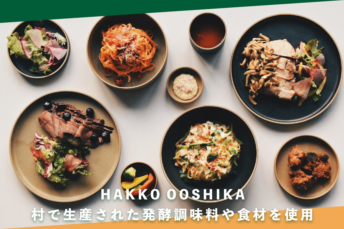 HAKKO OOSHIKAのコンセプトは発酵食品×地元食材です。発酵食品を基盤とし、大鹿村や近隣市町村で採れる食材、また信州を感じれる食材を組み合わせた様々な【ソース=Sauce】を楽しめる料理をご用意します。
