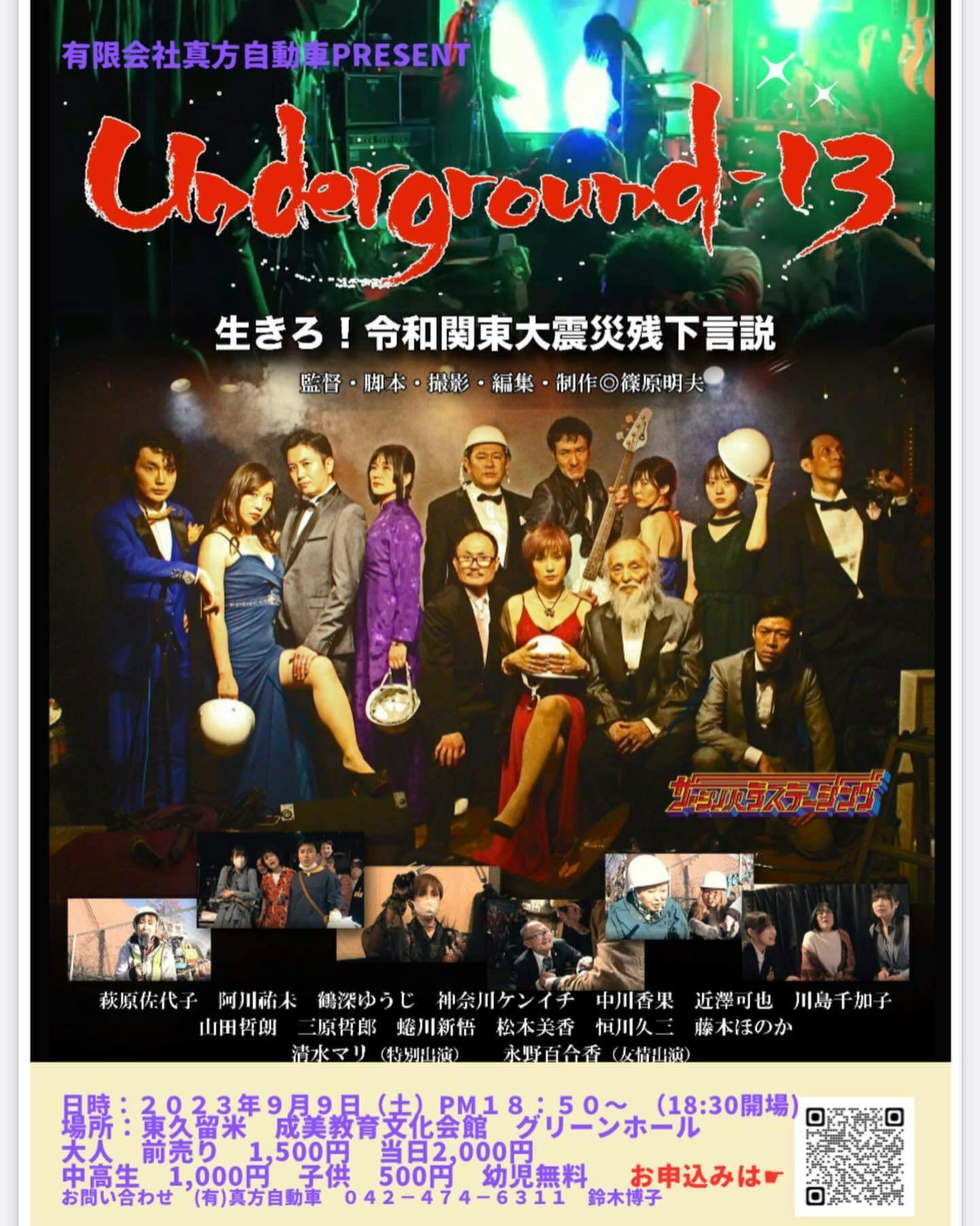 2023/07/29 07:15防災の月、そして救急の日 9月9日(土)18:50 start 18:30 open東久留米駅徒歩5分成美教育文化会館グリーンホールにてアシスト版 初上映!終演後、監督の篠原明夫出演者の萩原佐代子主題歌の横浜旭のトークショーが御座います。ご予約は #有限会社真方自動車迄→ https://www.magata-motors.com/.../_%E3%83%86%E3%82%B9%E3...クラファンでのリーターンのチケットもお使い頂けます。この場合、予めご一報頂けると幸いです。 042-474-6311 magata3@tmt.ne.jp担当 鈴木博子 もっと見る9月9日 東久留米で上映会