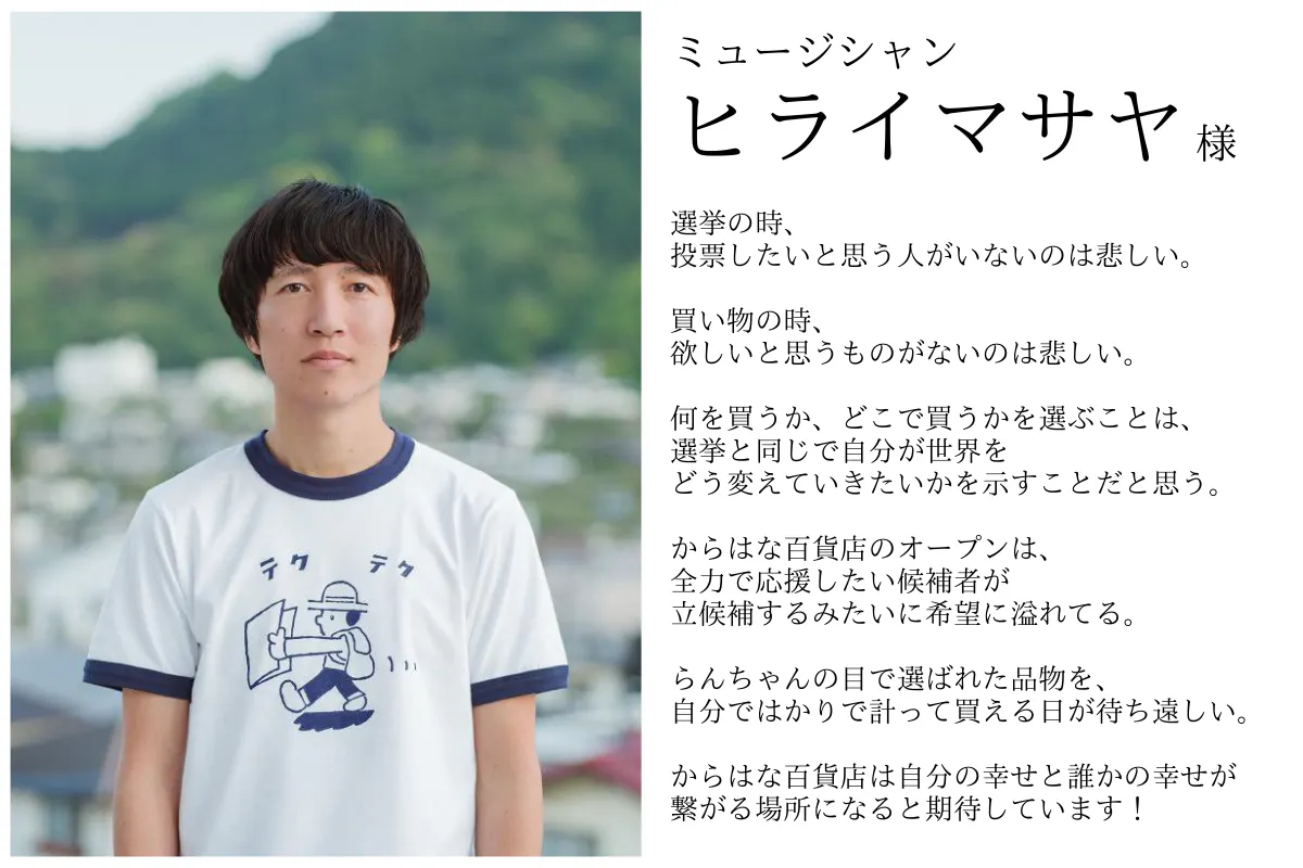 私1人だけではなく、地域の方々や生産者さん、お客さんなど、ここに関わる皆さのアイデアで、からはな百貨店は創られていきます。