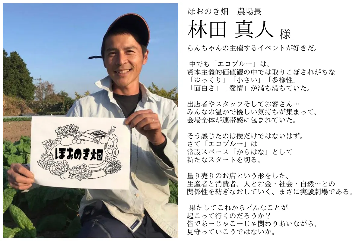 中でも、50店舗を超える出店が集まるイベント「エコブルー」は大変好評で、毎年親子連れを中心とし、近年の開催では約3,000人のお客様が来場して下さっていました。