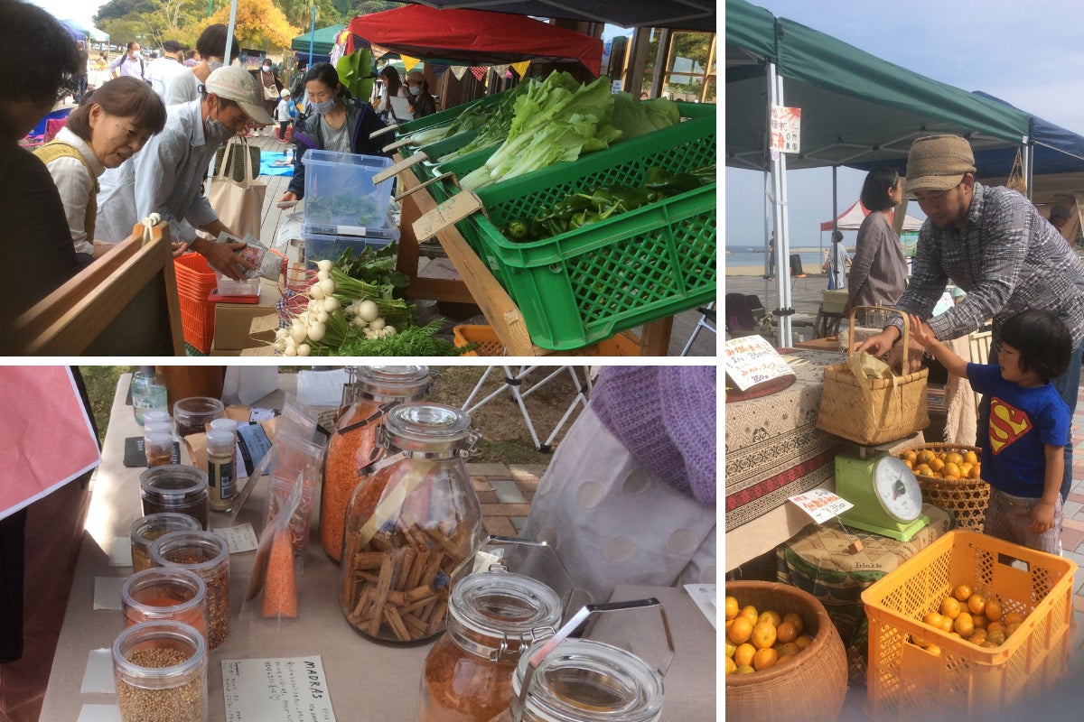 「エコブルー」はマーケットと、ステージやビーチクリーンを行うイベントで、マーケットはZero Waste (できるだけゴミを出さない)、Plastic Free(使い捨てのプラスチックを使わない)をテーマに、商品は個包装なし!お客様が持参する容器に欲しい分だけの量り売りで買えるシステム。この10年の取り組みは、SDGsやプラスチック問題への関心の高まりに伴い、年々高い評価をいただくようになっていきました。