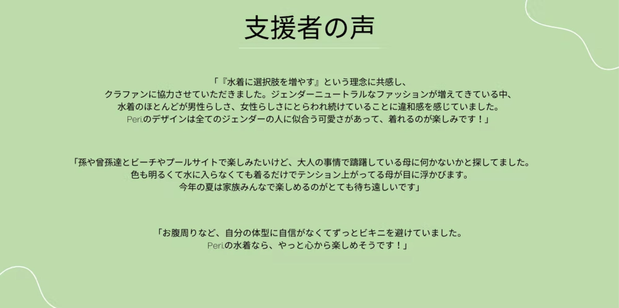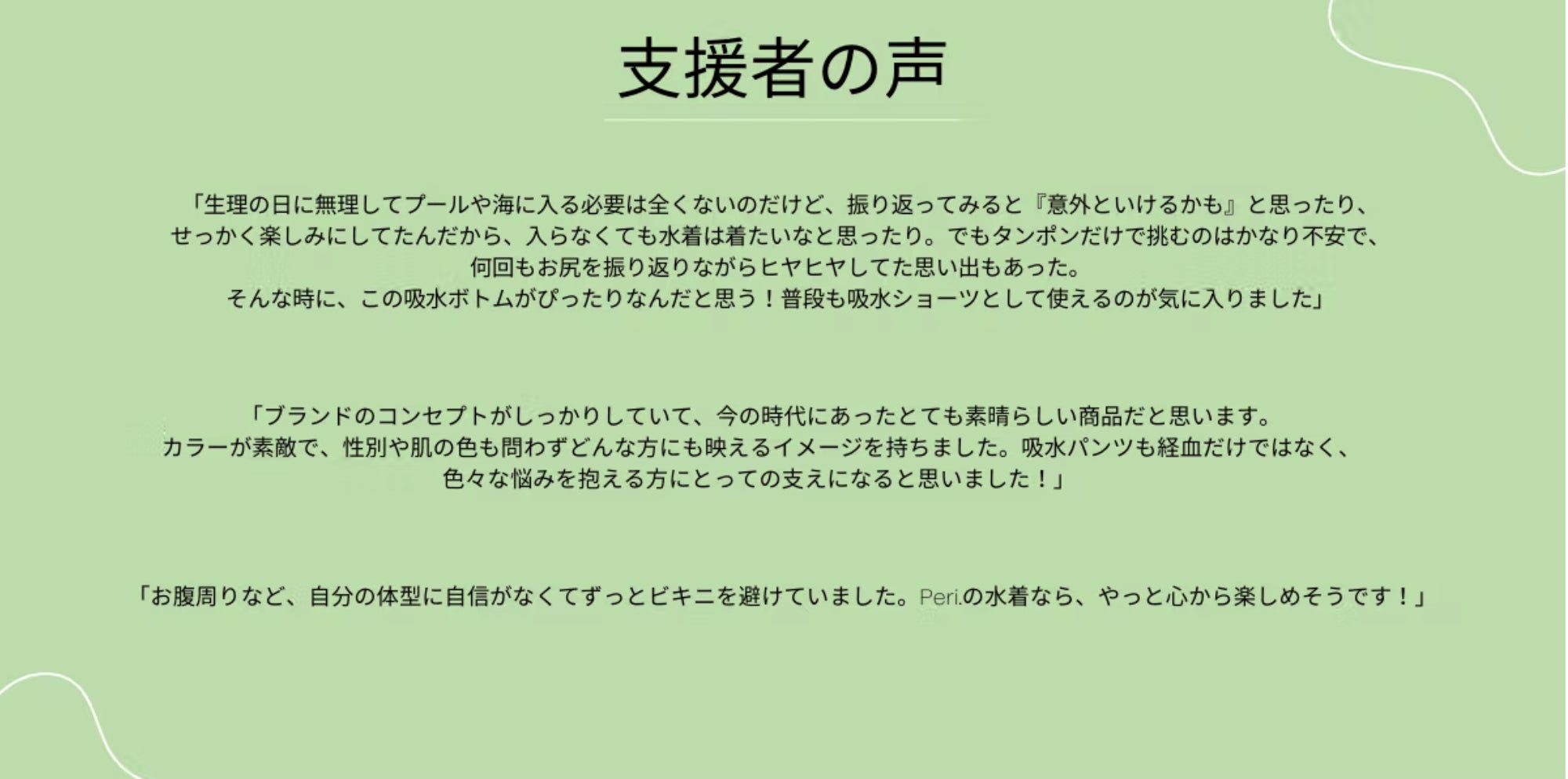 多くの方からPeri.の想いに共感頂いております。