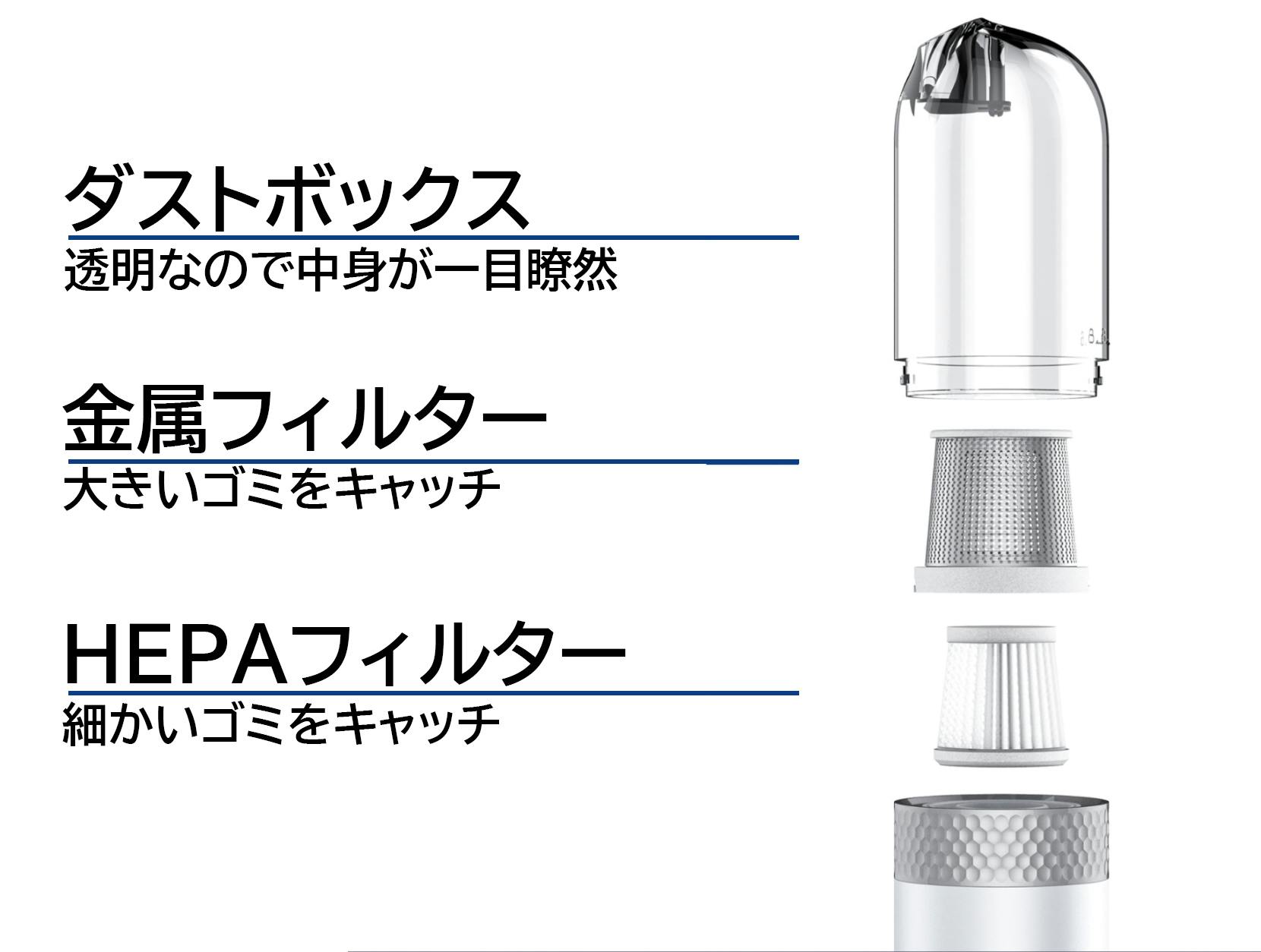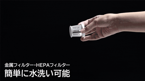 外側の金属フィルターは内側のHEPAフィルターが傷つかないように、小石など大きいゴミを通しません。