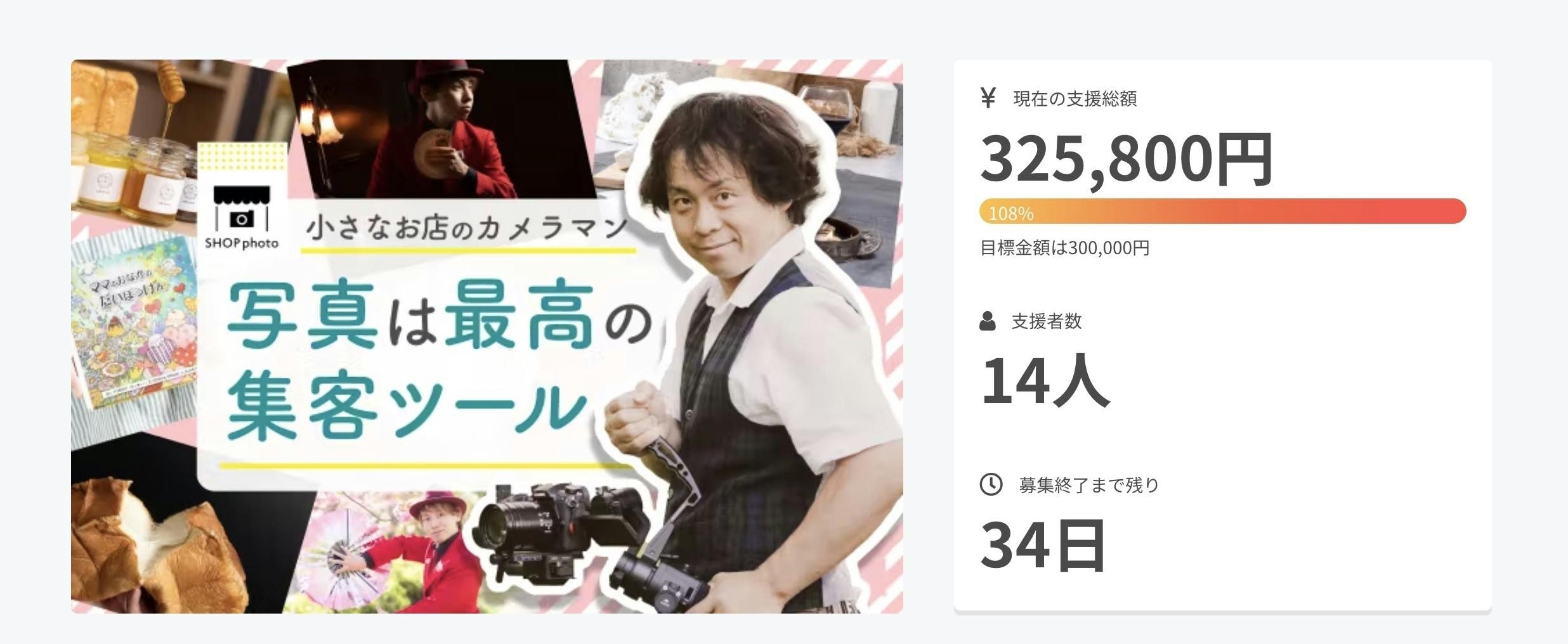 この度、よりたくさんの方々に僕のマーケティングサービスを届けるために、小さなお店のカメラマン「SHOP photo」を立ち上げることにしました。そして、多くの方にこのサービスや僕の想いを知っていただきたく、クラウドファンディングに挑戦します!