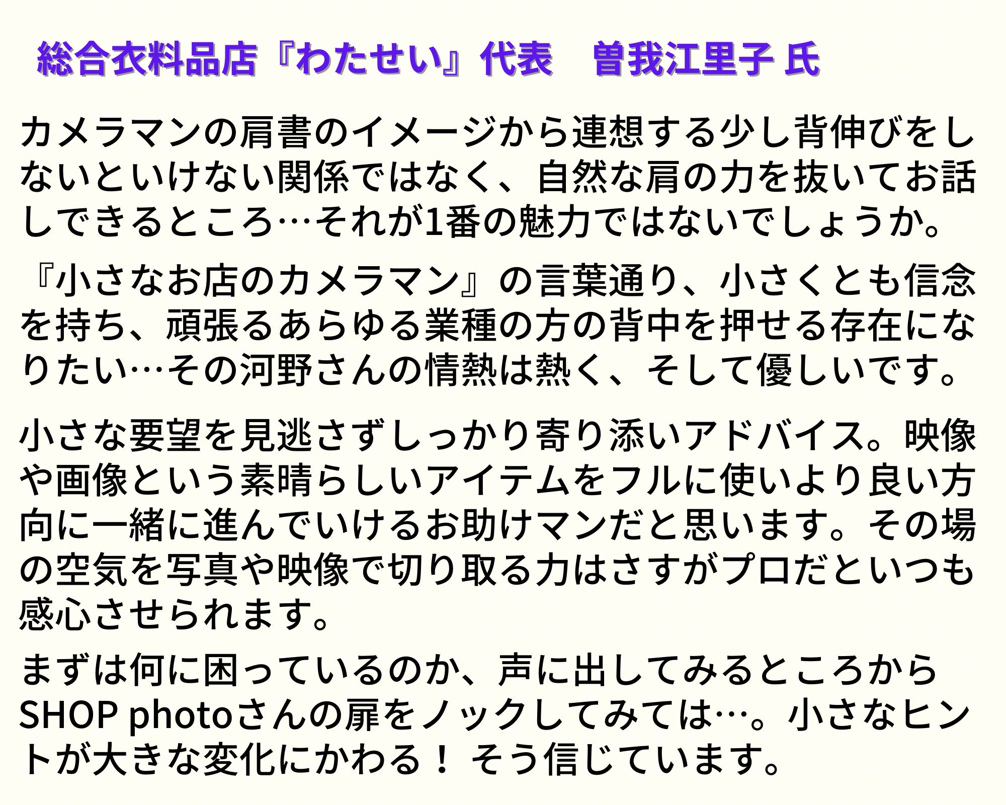 はじめまして、カメラマンでマーケティングコンサルタントの河野直樹と申します。