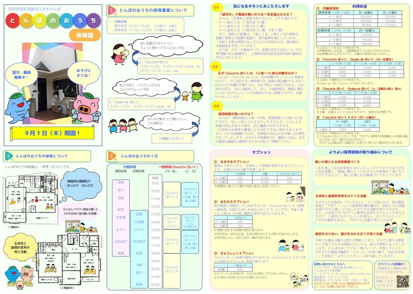 チラシを置いてもらうに当たって、場所を取ってしまっては申し訳ないので、A4で四つ折り両面のもの。中身を盛りだくさんにしてしまったので、字はちょっと小さめですが、「詳細はWebで!」っていうことにしても、紙で見たい人は紙で完結させたいだろうし・・・と思い、できるだけの情報を載せることにしました。