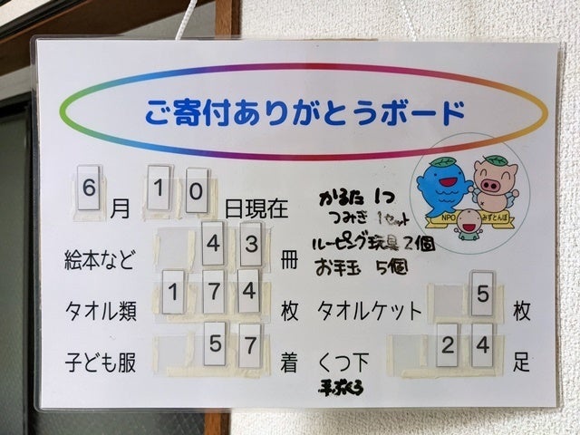 少しずつ増えていく寄付の品々。