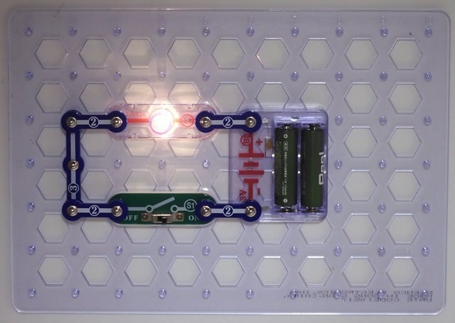 これは、LEDライトを点灯させるという最も簡単な回路をつくったもの。