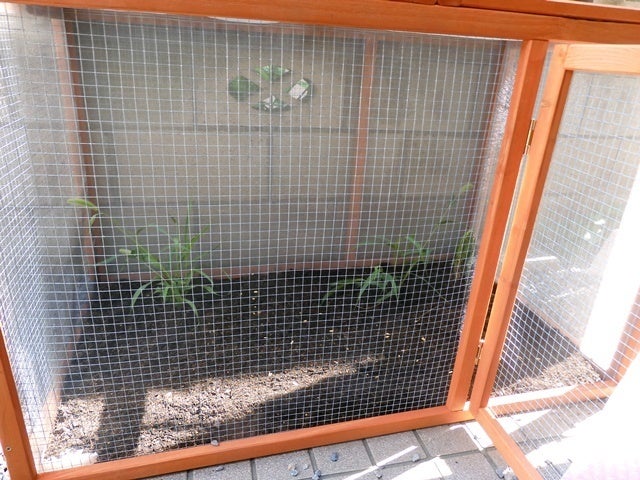 土曜日に、むしむしハウスに網戸の網を張り、土を入れました。