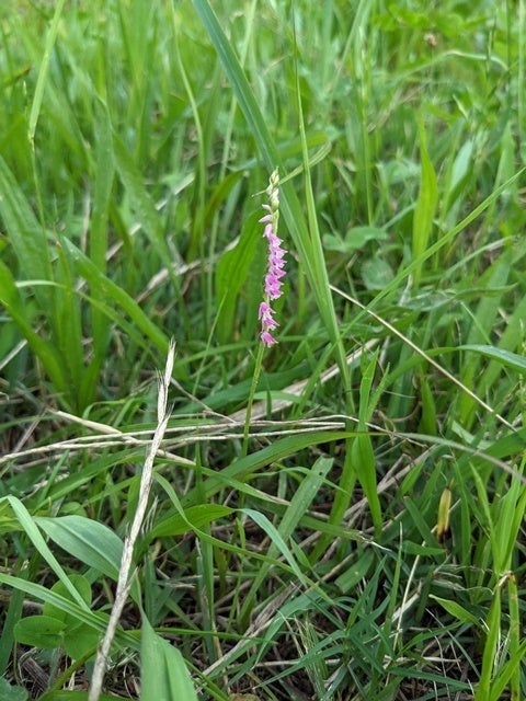 少し歩くと、ネジバナの花を発見。ネジバナは1株だけで生えていることはなくて、その周辺を探すと、あちこちに生えています。でも、持ち帰って植え替えたりすると、ほとんど根付くことなく枯れてしまうのです。
