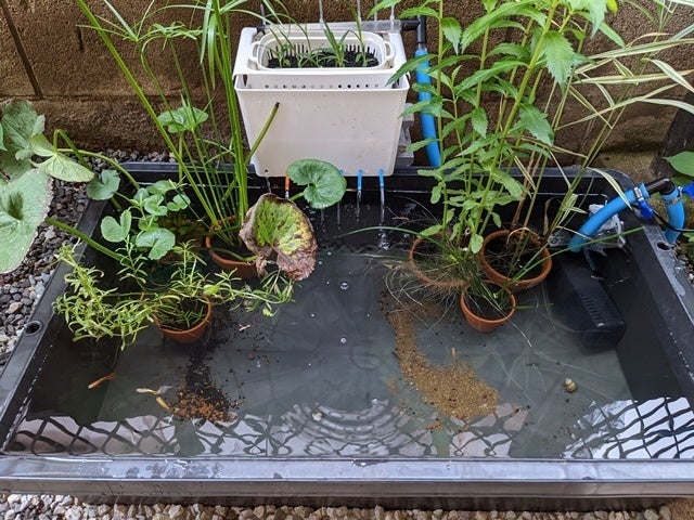 熱帯魚水槽といった感じですが、寒くなったらヒーター入れるので、冬越しは大丈夫です。