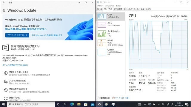 Windows11がインストールできるよーということだったので、Windows11にしてしまいました。(WindowsUpdate中はCPUがフル回転で、何もできません・・・。)