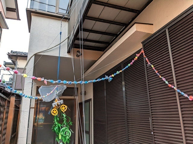 来週は、残っている笹の葉や紙皿の星を吊るしたりして、さらににぎやかにします。今日のところは暑すぎてギブアップ。