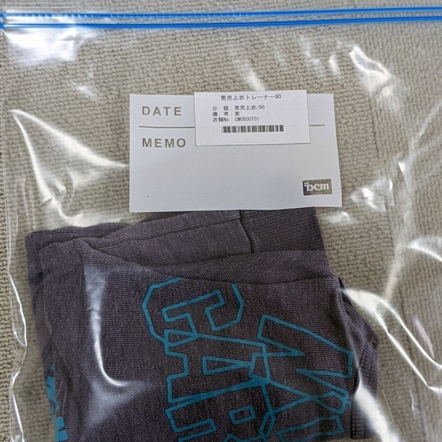 衣類を登録したら、TEPRAのアイロンラベルにプリントアウトできるようにしています。(余談ですが、アイロンラベルはTEPRA本体のオートカッターを使用すると摩耗すると記載されています。(使ってはいけないとは書いていませんが。))