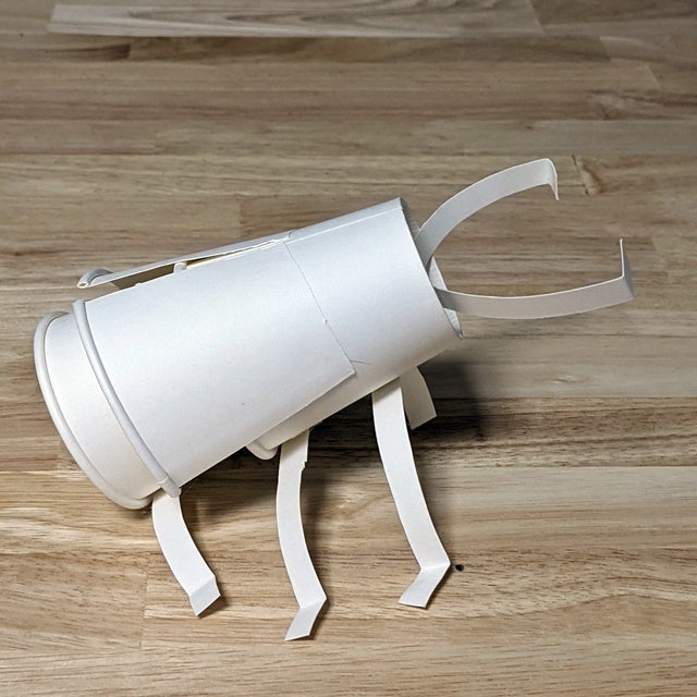 ・紙コップに切り込みを入れる。