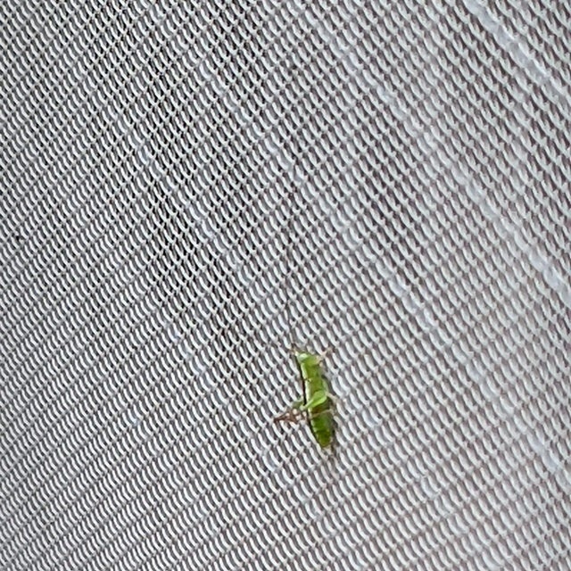 むしむしハウスで、ウスイロササキリのあかちゃん(5mmほどの大きさなので、うまれたてではありませんが)を見つけました。