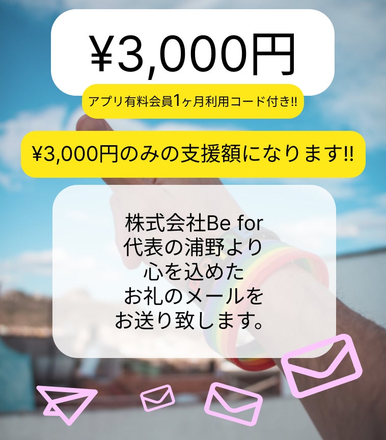 ※ご支援頂いた方全ての方に、アプリリリース日時の情報をお送り致します。
