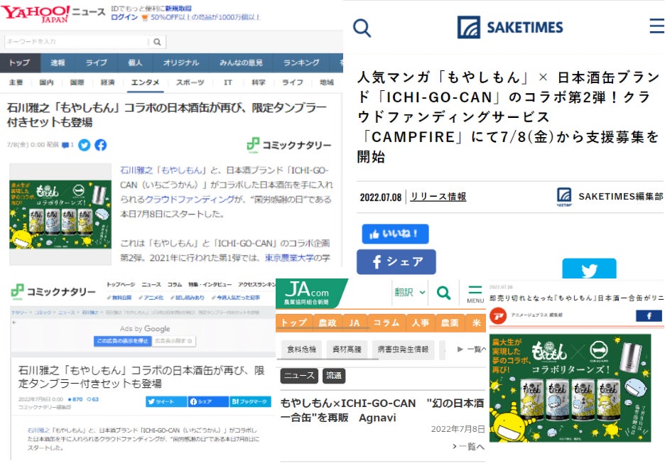 この度は多くのご支援をいただき、誠にありがとうございます。想像以上の反響と皆様からのたくさんの応援コメントをいただき、感謝申し上げます。今回のプロジェクトについて、たくさんのメディアにて掲載いただいており、一部をご紹介いたします。皆様もご覧になられたでしょうか?ヤフーニュース, saketimes , コミックナタリー, JA新聞, アニメージュ+ *内容はクリックしてご確認ください今週末は3連休ですね、皆様良い週末をお過ごしください。