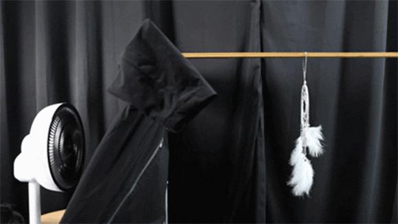 扇風機の強い風もシャットアウトする生地です。寒い風が吹き付ける日でも、重ね着を減らせる防風性の高い生地を使用しています。